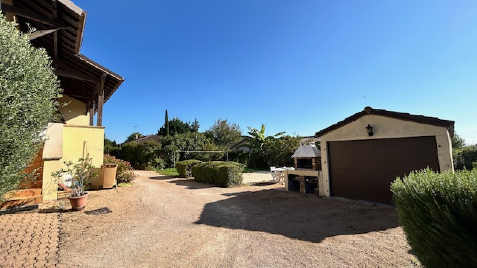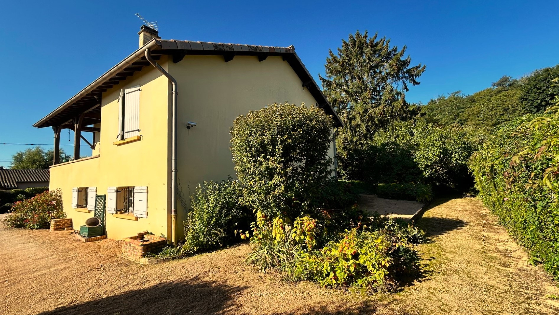 Cette maison a été bien implantée sur son terrain (cour d’accueil au sud, terrasse et jardin d'agrément à l’est, espaces végétalisés au nord et à l’ouest.