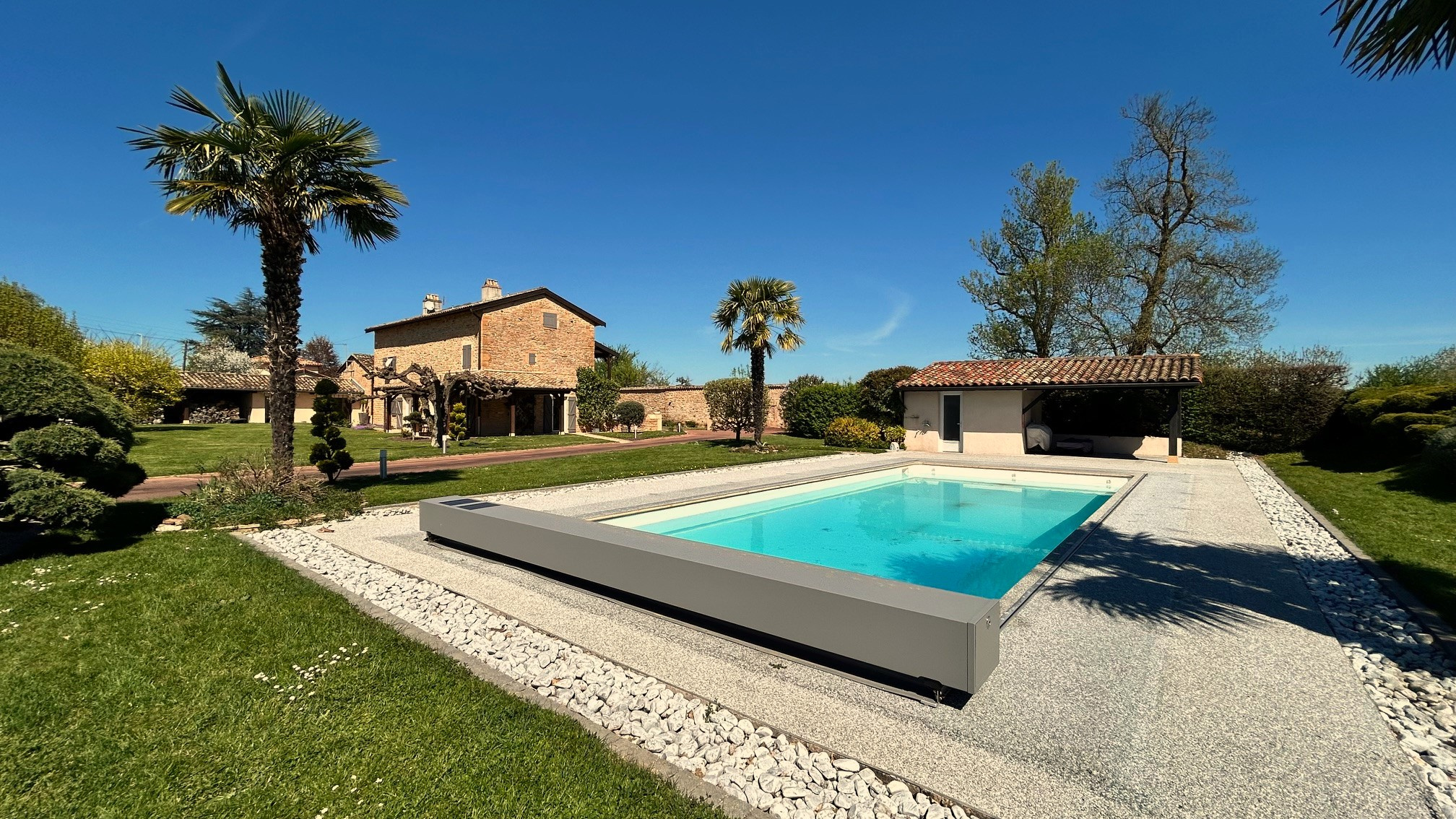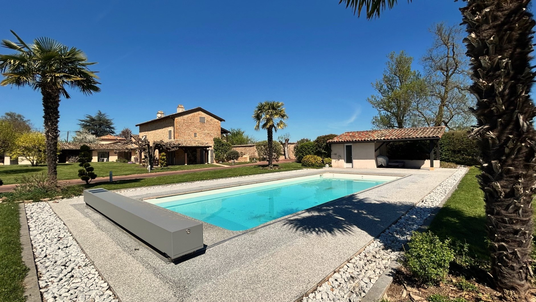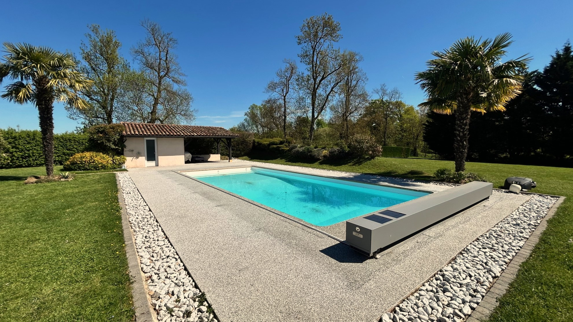 Piscine 12 ml par 6 ml (avec système bâche de sécurité à enrouleur télécommandé),