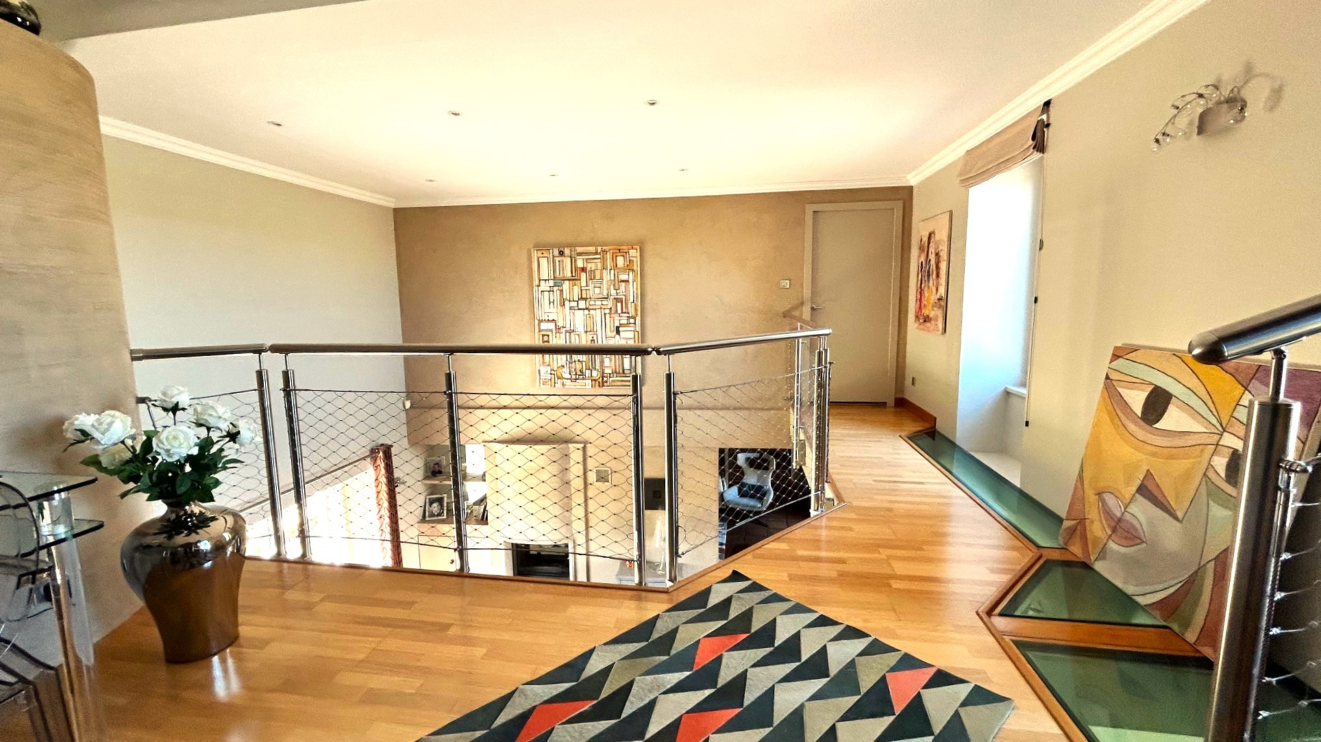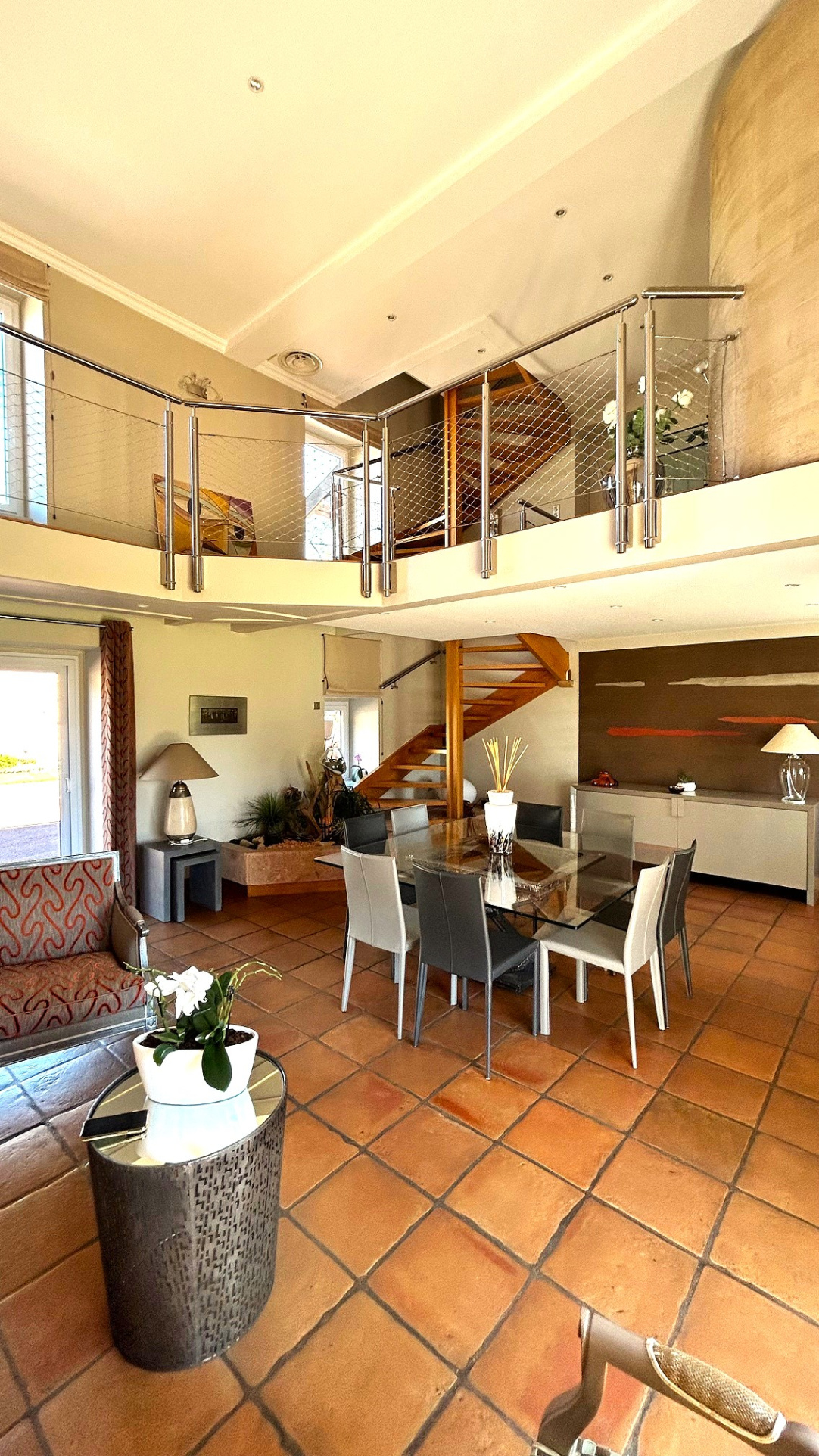 - Salle-à-manger (en enfilade et traversant Est/Ouest) avec belle hauteur sous plafond et accès étages via escalier intérieur desservant une mezzanine,