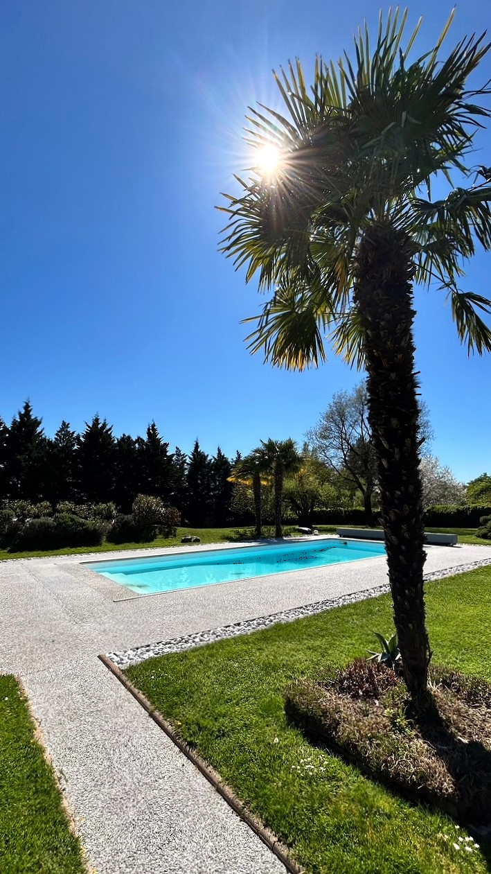Elle constitue un véritable carrefour entre la cour, les terrasses aériennes, la terrasse abritée et l’habitation, située à proximité de la piscine, une voie de passage obligée : surtout pour les plus petits à l'occasion des goûters et des anniversaires !