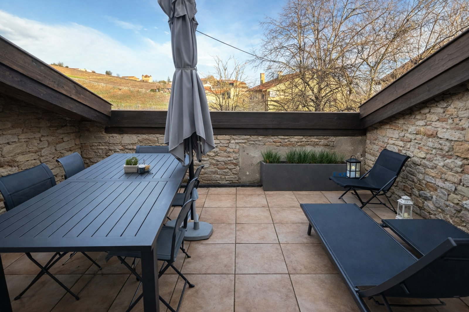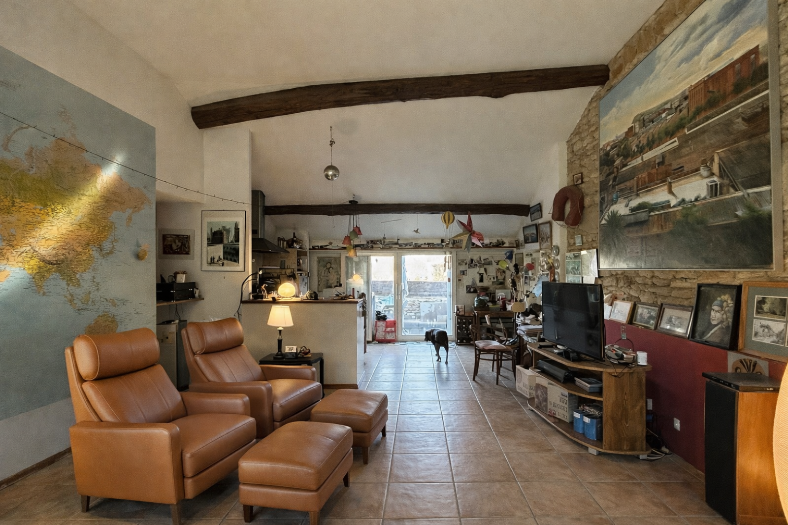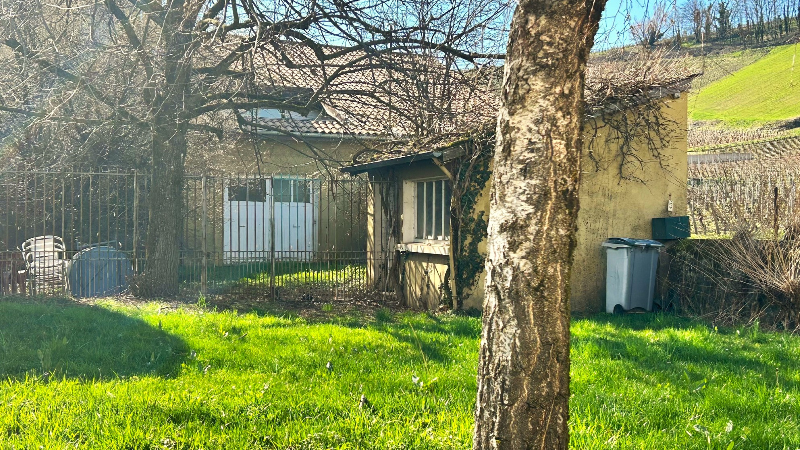 Une ancienne maison de vigneron en pierre de taille composée de deux bâtiments contigus, offrant un accès par une cour avec jardin d'agrément et espace de stationnement, et par le Sud avec très belles vues via une cour et jardinet d'agrément desservent l'habitation.
